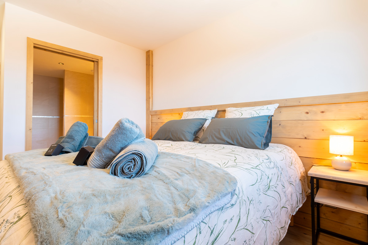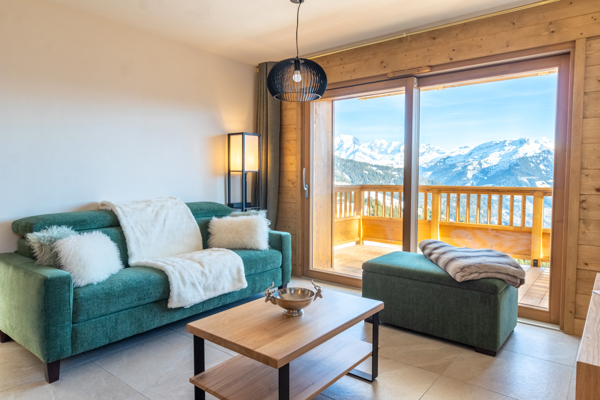 Pensé pour accueillir jusqu’à 6 voyageurs, ce lumineux 4 pièces de 81 m² offre un confort rare en station : volumes généreux, prestations premium et ambiance chaleureuse avec vue dégagée sur les montagnes.